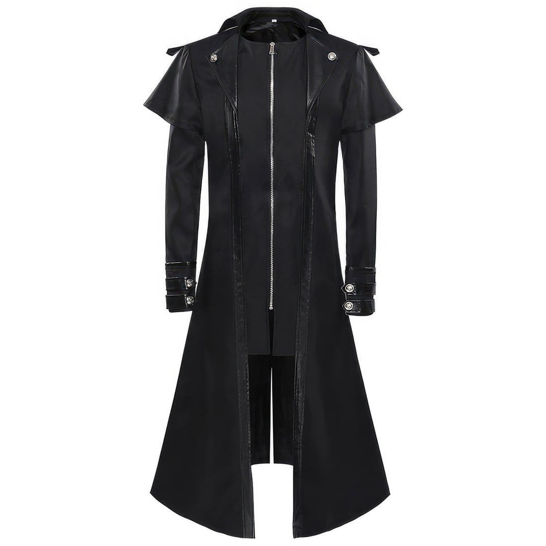 Men’s Black Gothic Genuine Sheepskin Halloween Victorian Uniform Cosplay Costume Steampunk Medieval Vintage Leather Trench Coat