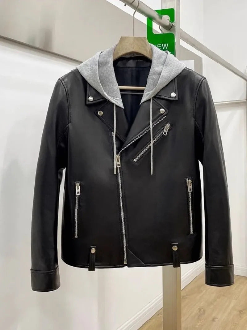Men's Hooded Genuine Sheepskin Leather Jacket