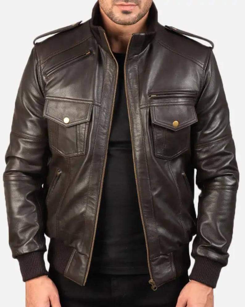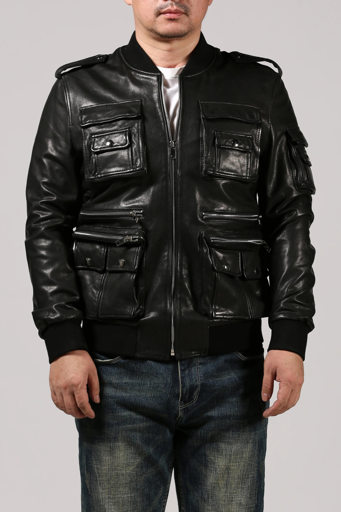 Men's Genuine Cowhide Leather Jacket with Pockets