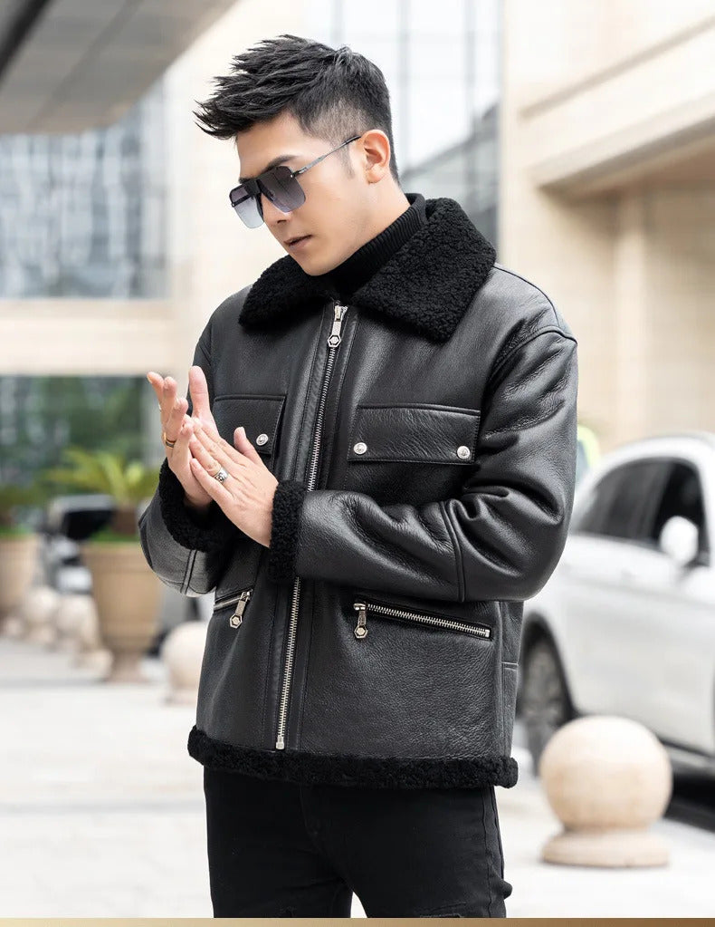 Men's Genuine Sheepskin Leather Jacket - Loose Casual Fit