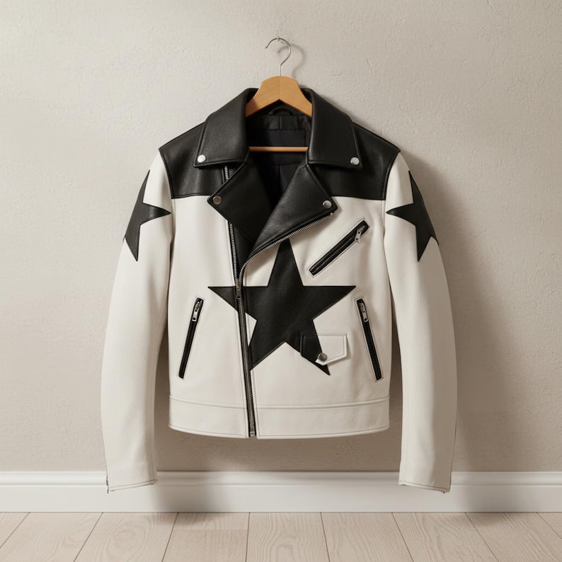 Star Graphic Cowhide Leather Motorcycle Jacket – Asymmetrical Moto Rider Style