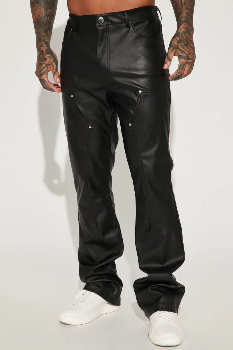 Men's Slim Fit Genuine Leather Pants - Elongated Straight First Layer Leather