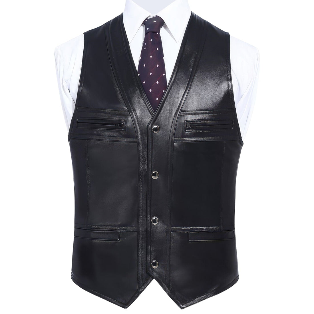 Gentlemen's Business Casual Slim Fit Genuine Sheepskin Sleeveless Vest -Leather Waistcoat for Men