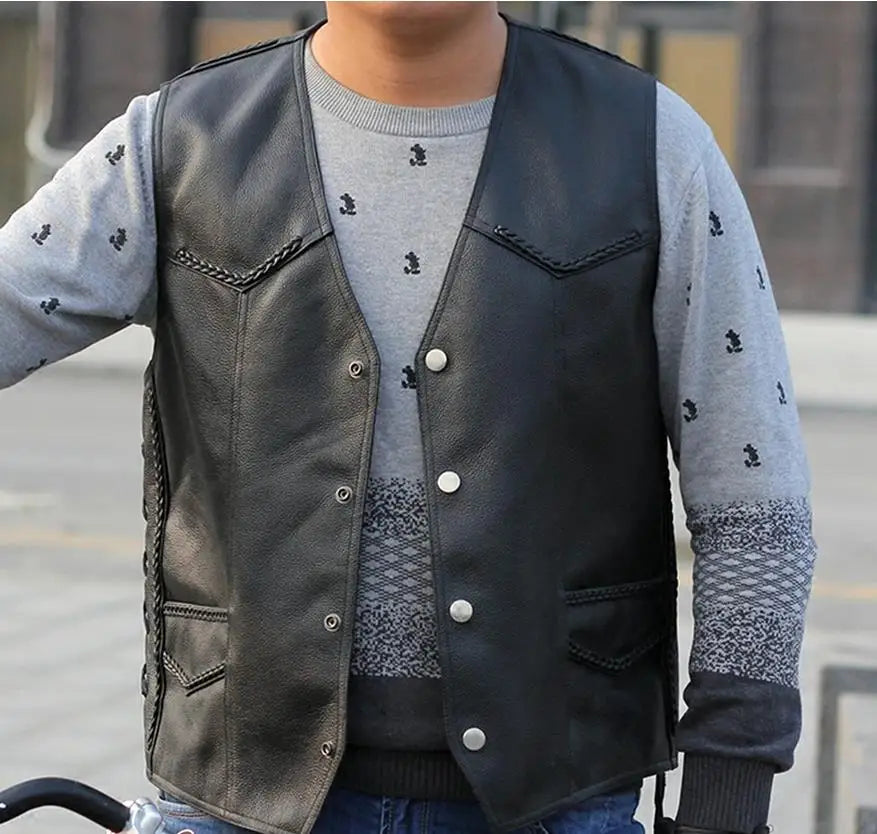 Men's Vintage Cowhide Leather Motorcycle Rider Vest