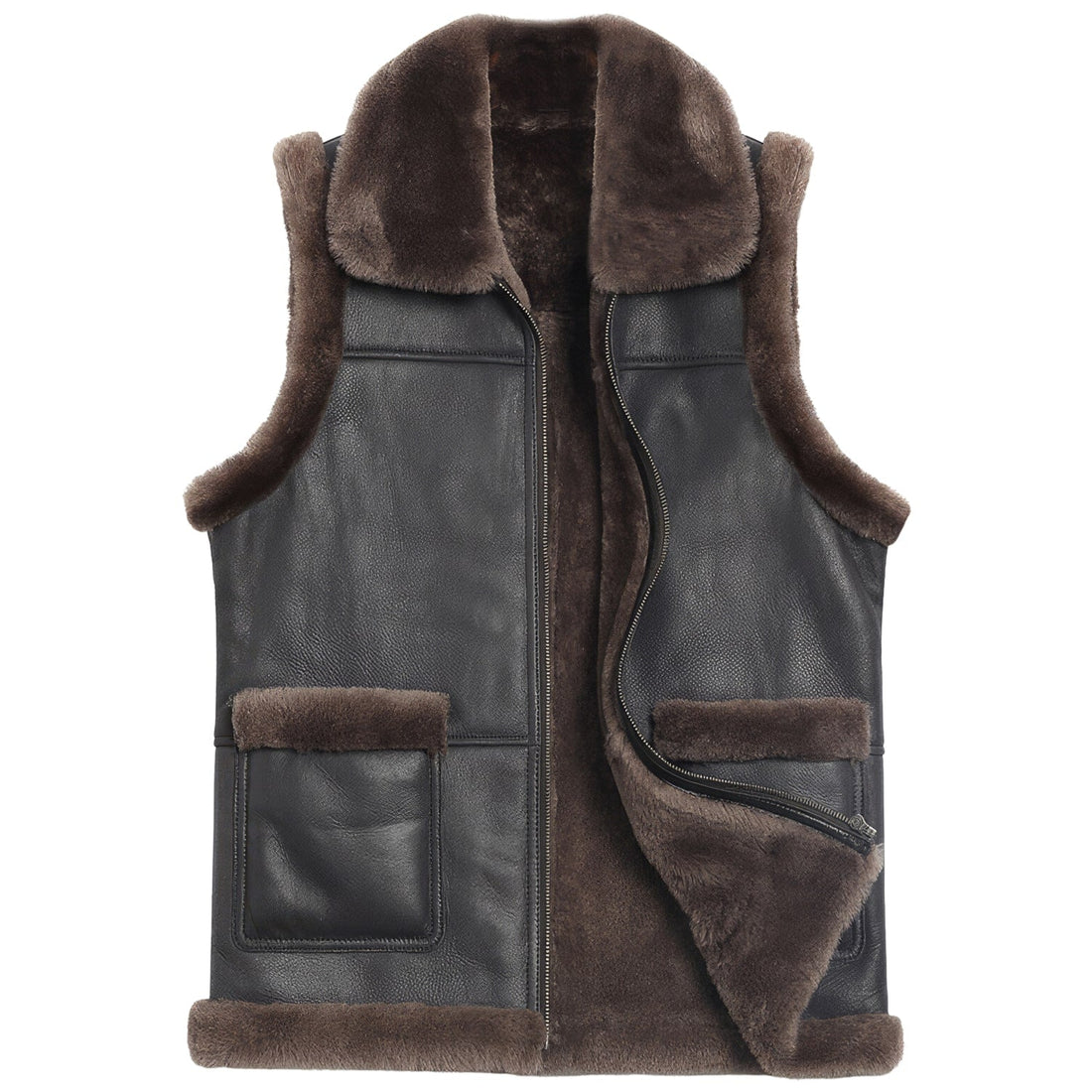 Men's Genuine Sheepskin Leather Winter Vest Jacket
