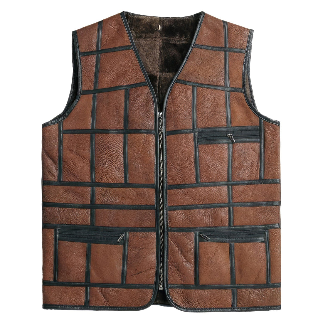 Men's Genuine Cow Leather Winter Vest Jacket with Sheepskin Lining