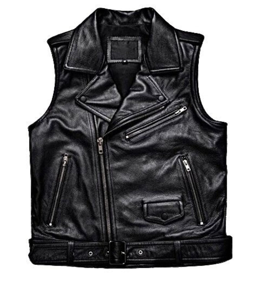 Boost your wardrobe with this Men's Brown Biker Genuine Cowhide V-Neck Cafe Racer Vest. Made...