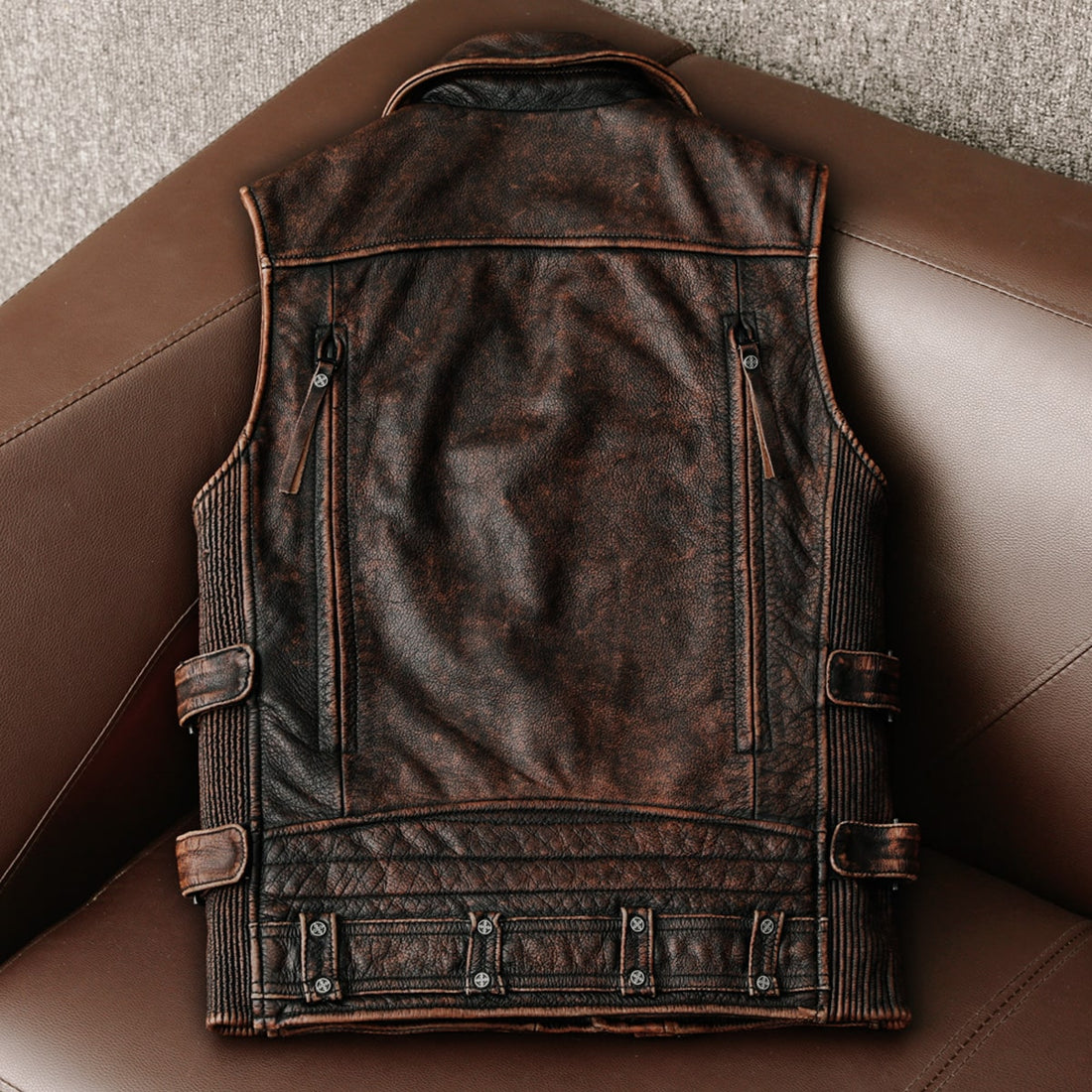 Men’s Biker Vintage Brown Genuine Cowhide Western Slim Fit Leather Zipper Waistcoat