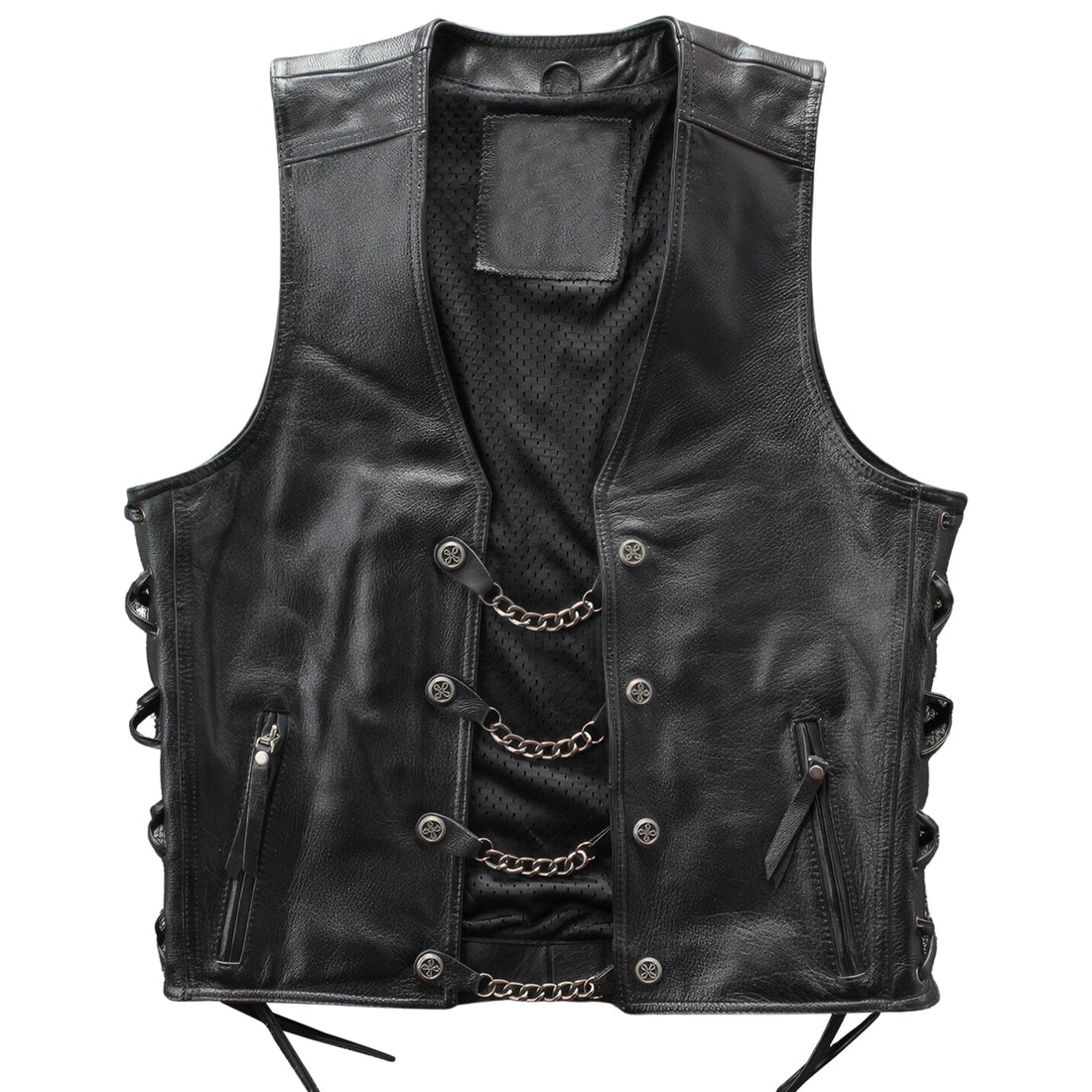 Men’s Black Biker Genuine Sheepskin Sleeveless Lace-Up Trendy Motorcycle Streetwear Punk Fashion Leather Waistcoat