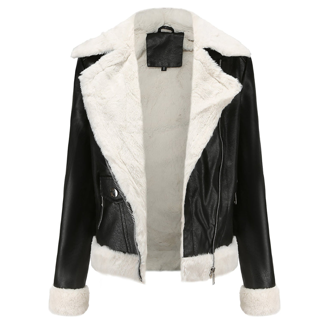 Women’s Black Genuine Suede Sherpa Shearling Faux Fur Lined High Street Moto Biker Winter Warn Thick Loose Leather Jacket