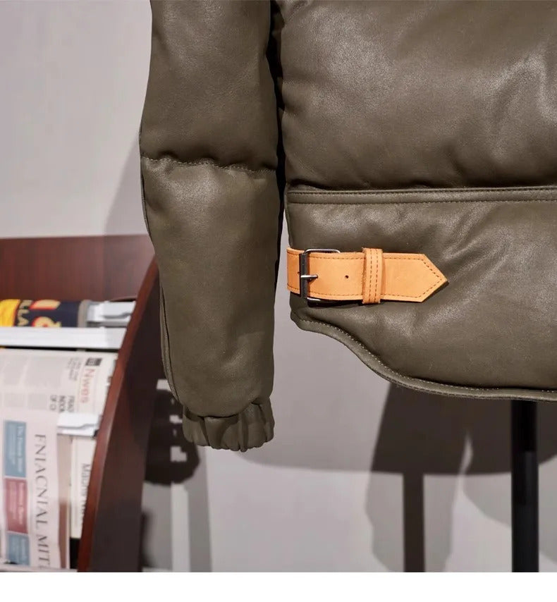 Fashionable Streetwear: Elevate your style with this sleek leather jacket, perfect for urban fashion enthusiasts.