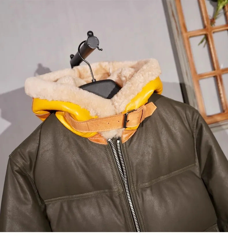 100% Natural Sheepskin Jacket: Fashionable Street Leatherwear for Moto Riders