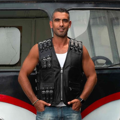 Adjustable Men's Cowhide Leather Stylish Rider Vest: Super Quality Cow Skin