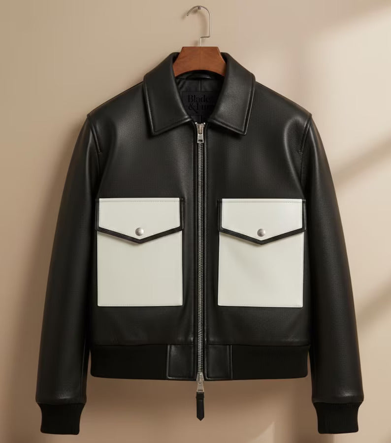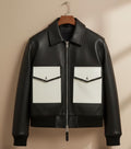Classic Design: Black leather body with white leather sleeves for a bold contrast.