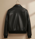 Black & White Leather Bomber Jacket – Classic Retro Varsity Style
