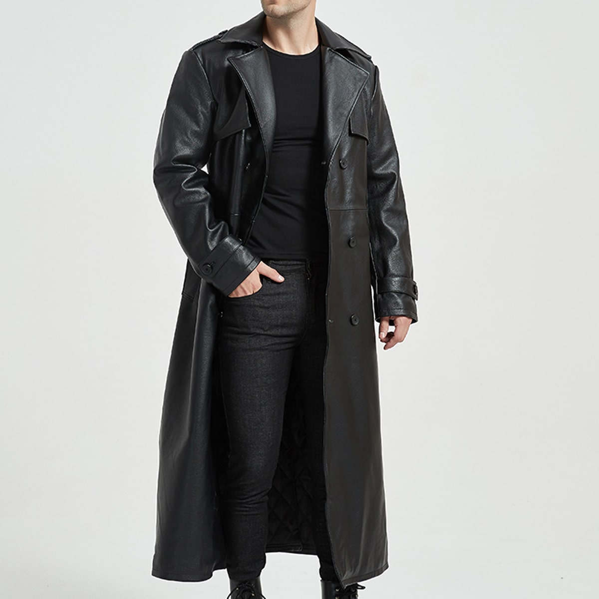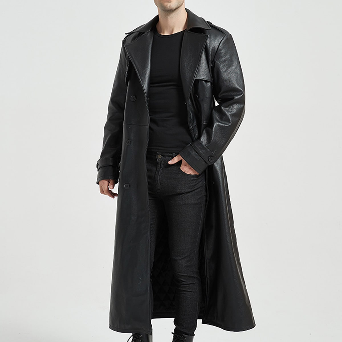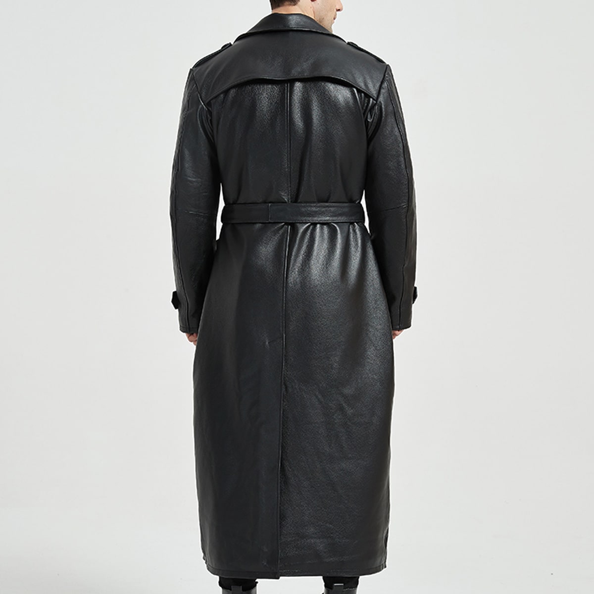 Introducing our Black Long Leather Genuine Sheepskin Trench Coat, a fusion of style, sophistication, and practicality. Crafted with precision, this English (US) coat caters to those who appreciate a modern, sleek appearance, blending contemporary design with timeless elegance.