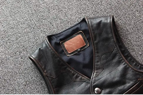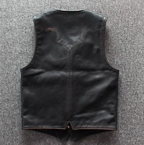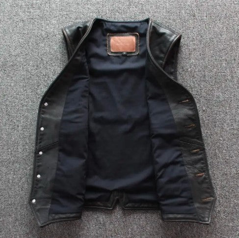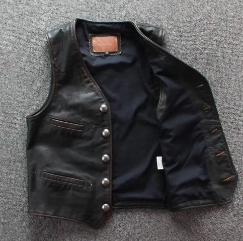 Genuine Cowhide Leather Motorcycle Biker Vest for Men