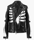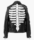 Handmade Men's Black Skeleton Motorcycle Jacket - Genuine Cowhide Leather