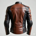 Handmade Men's Dual-Tone Leather Biker Jacket – Brown & Black Moto Style