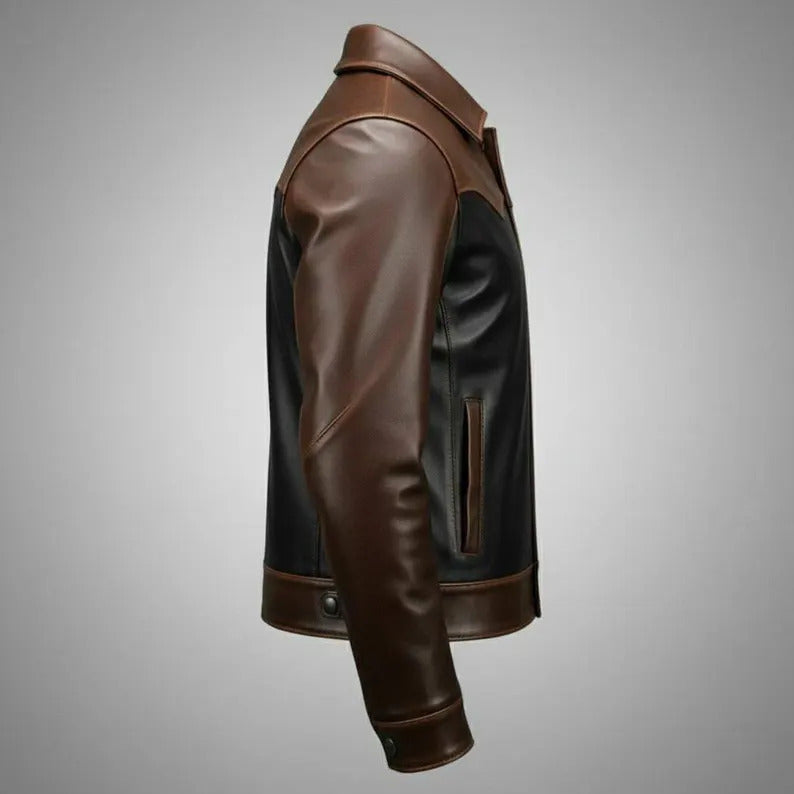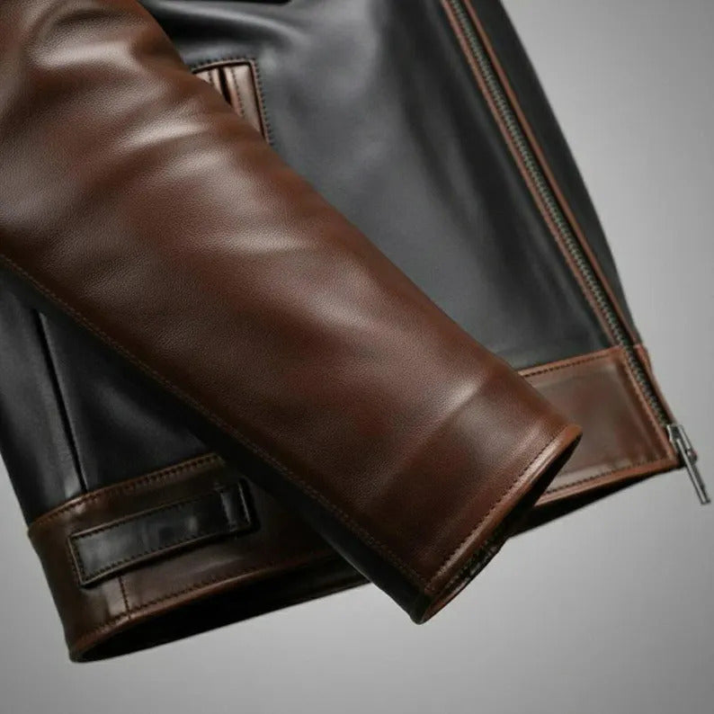 Handmade Two-Tone Biker Jacket – Genuine Leather Classic Style