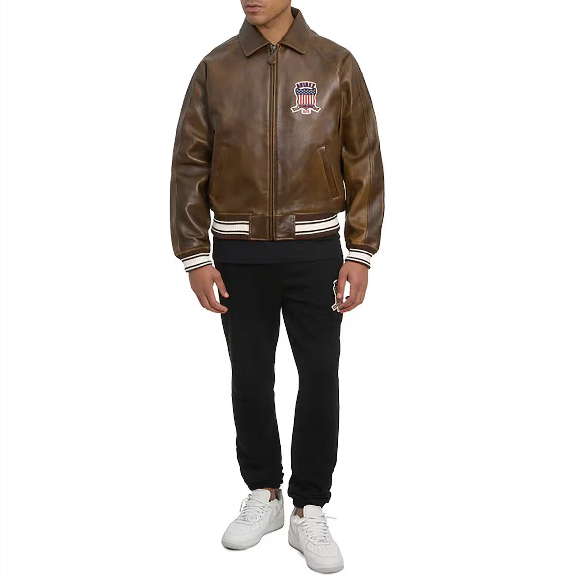 Limited Edition Design: Stand out with this exclusive vintage brown leather military bomber jacket, available in limited quantities.