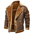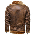 Men’s B3 Bomber Aviator Vintage Distressed Brown Genuine Sheepskin Faux Fur Lapel Collar Asymmetric Leather Jacket