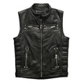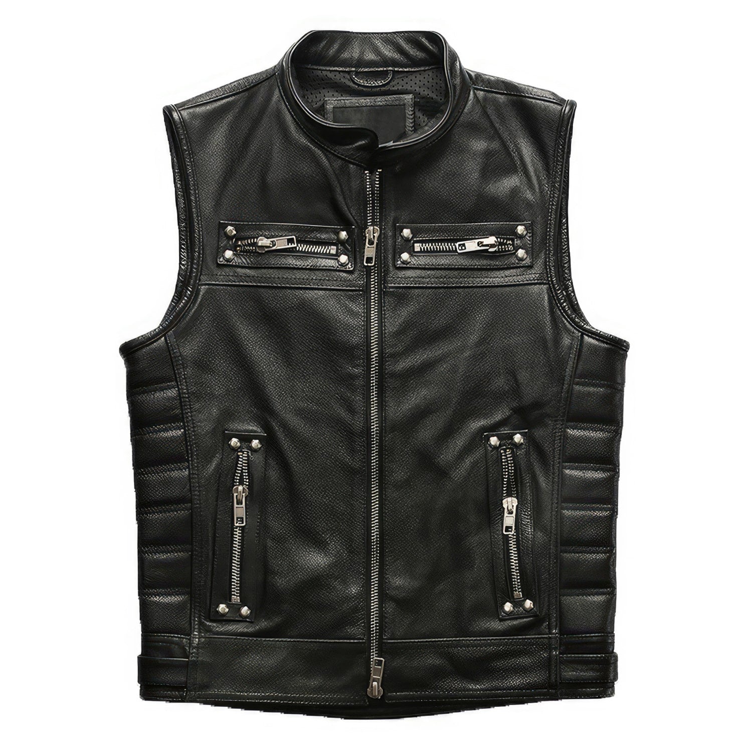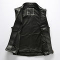 Men’s Biker Black Genuine Cowhide Sleeveless Vest Quilted Zip-Up Moto Lightweight Classic Smooth Slim Fit Leather Waistcoat