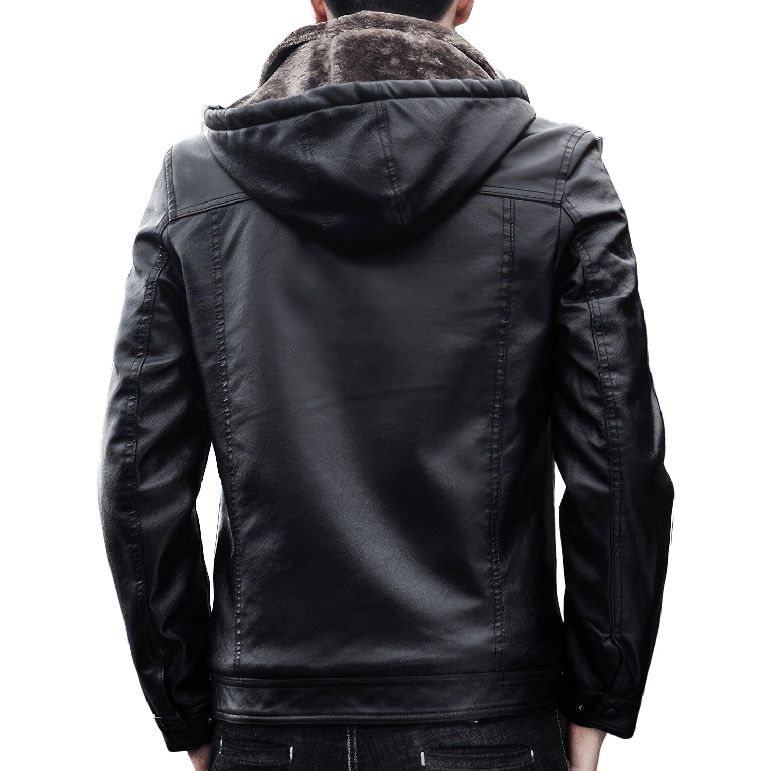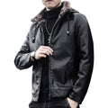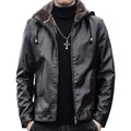 Men’s Black Biker Genuine Sheepskin Sherpa Shearling Faux Fur Lined Removable Hood Drawstrings Motorcycle Rider Slim Fit Leather Jacket