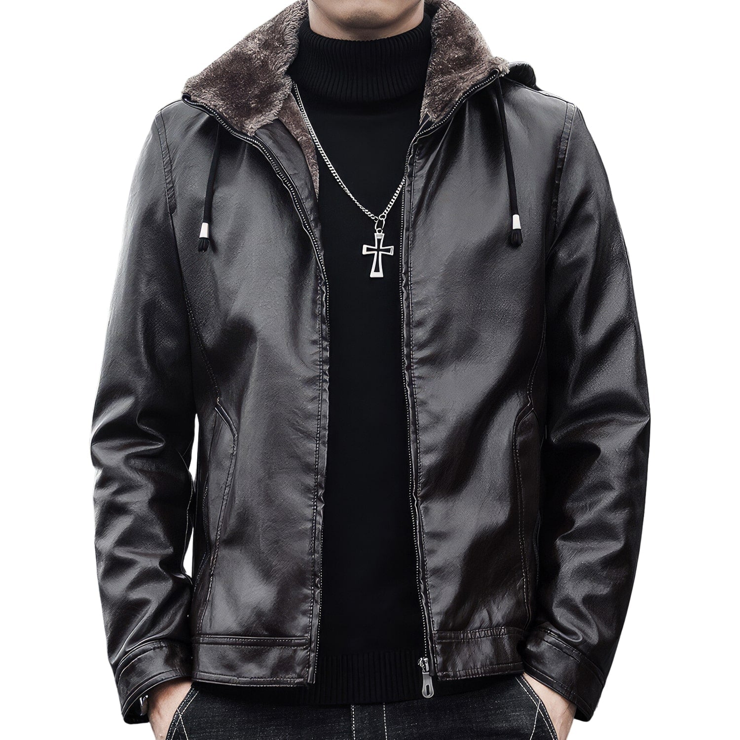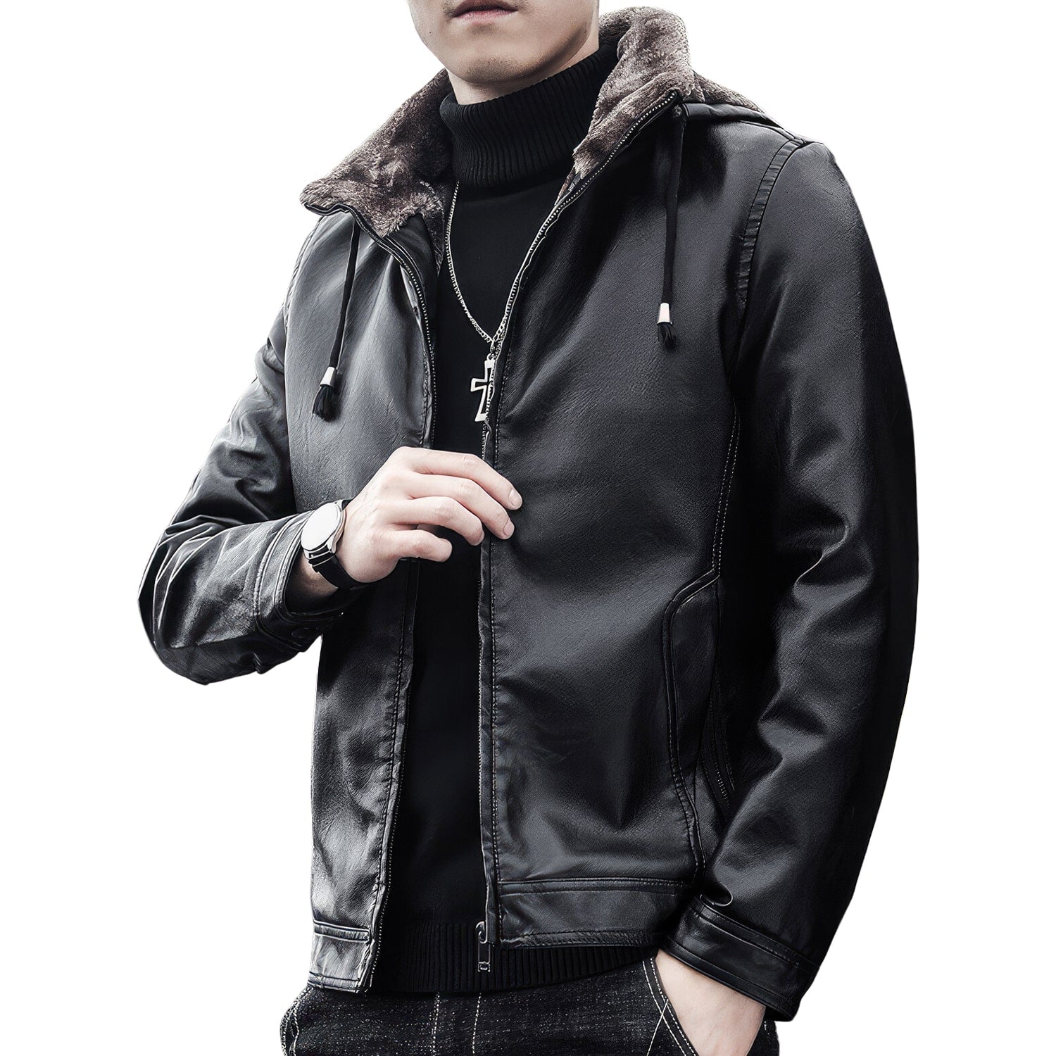 Upgrade your outerwear collection with the Men's Black Biker Genuine Sheepskin Sherpa Shearling Faux Fur Lined Removable Hood Drawstrings Motorcycle Rider Slim Fit Leather Jacket. Made from premium genuine sheepskin leather and lined with warm Sherpa shearling faux fur, this motorcycle rider jacket delivers unbeatable comfort and style. The unique removable hood with drawstrings adds versatility, allowing you to adapt to changing weather conditions. Convenient slanted pockets provide storage for your essentials while the reliable YKK zipper closure ensures a secure fit. Make a statement and stay warm with this exceptional biker leather jacket.