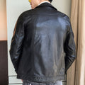 Men’s Black Biker Genuine Sheepskin Shirt Collar Cafe Racer Retro Zip-Up Casual Slim Fit Moto Rider Smooth Leather Jacket