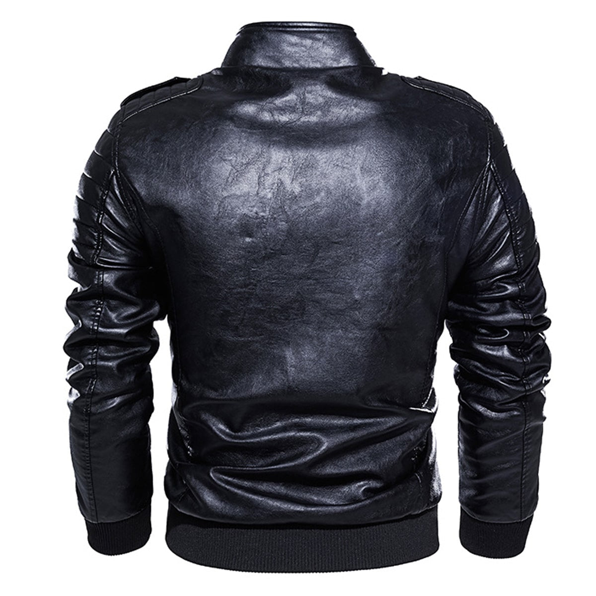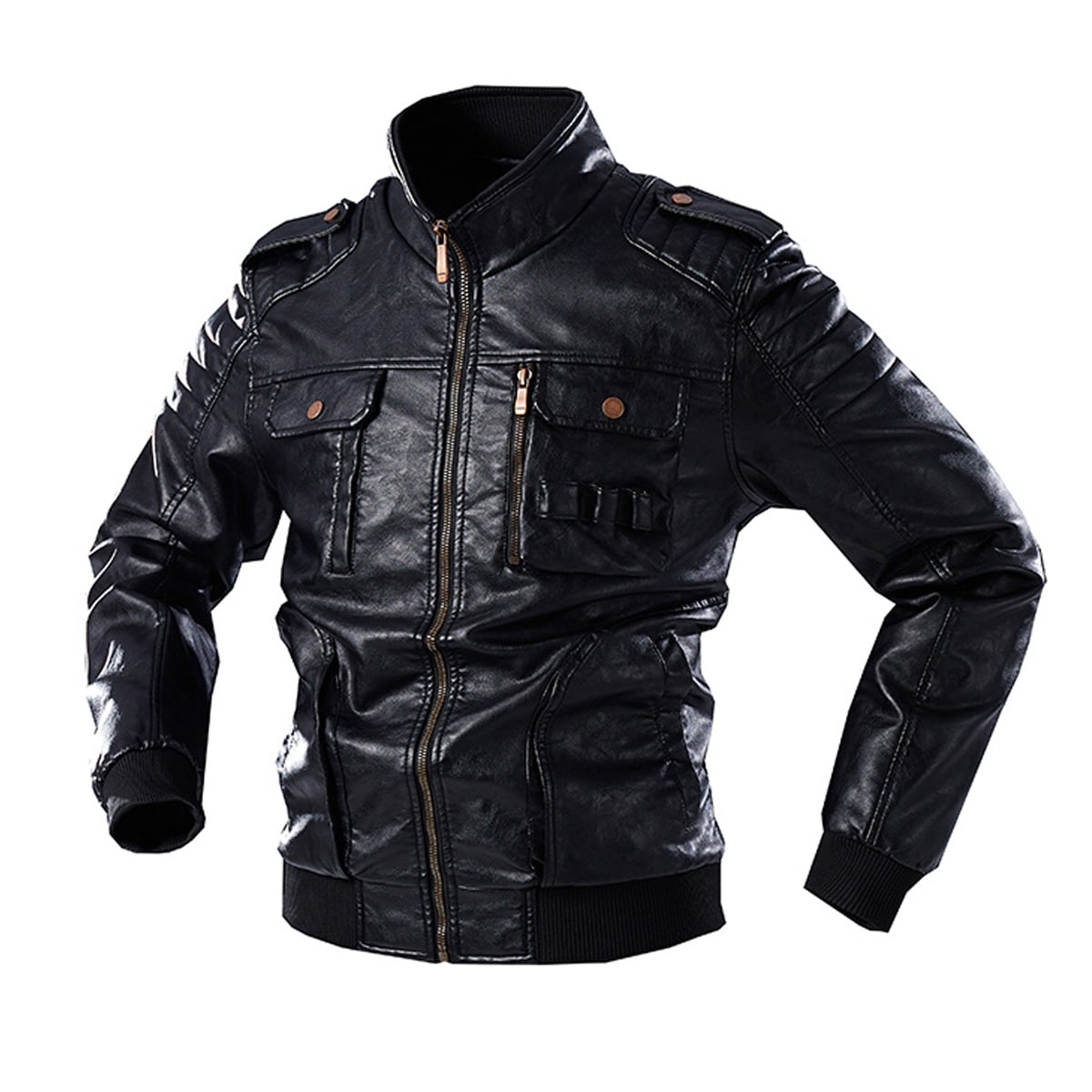 Men’s Black Bomber Biker Genuine Sheepskin Stand Collar Classic Fashionable Outfit Moto Leather Jacket