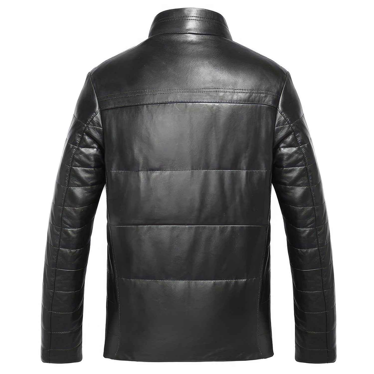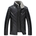Men’s Black Genuine Sheepskin Faux Fur Collar Quilted Shoulders Padded Thick Winter Warm Puffer Leather Jacket