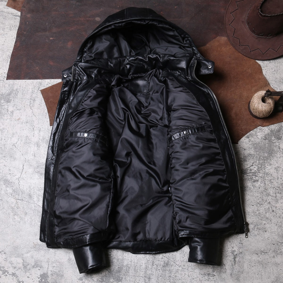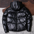 Men’s Black Genuine Sheepskin Removable Hood Padded Fashionable Warm Outfit Winter Puffer Leather Jacket