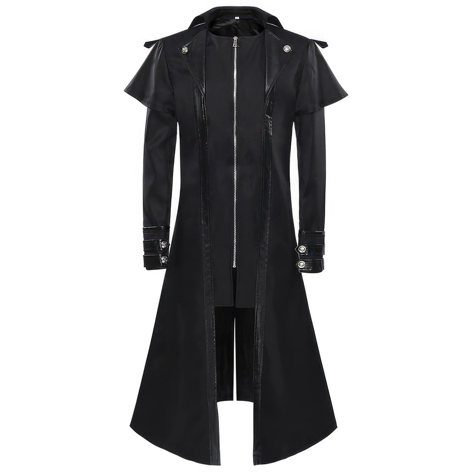 Step into another era with our Men’s Black Gothic Genuine Sheepskin Leather Trench Coat. Constructed from superior sheepskin leather, this coat ensures longevity and a luxuriously soft touch. The single-breasted design features a reliable YKK zipper closure, securing a stylish fit. Metal buttons add an elegant touch to the trench coat, enhancing your Victorian gothic aesthetic. As a full-length coat, it offers complete coverage, perfect for creating a medieval-inspired outfit or for added warmth during the colder seasons. Its dark hue and distinctive design make this coat a fantastic choice for gothic-themed events, Halloween parties, or any cosplay occasion. Embrace your unique style with this vintage leather trench coat.