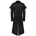 Men’s Black Gothic Genuine Sheepskin Halloween Victorian Uniform Cosplay Costume Steampunk Medieval Vintage Leather Trench Coat