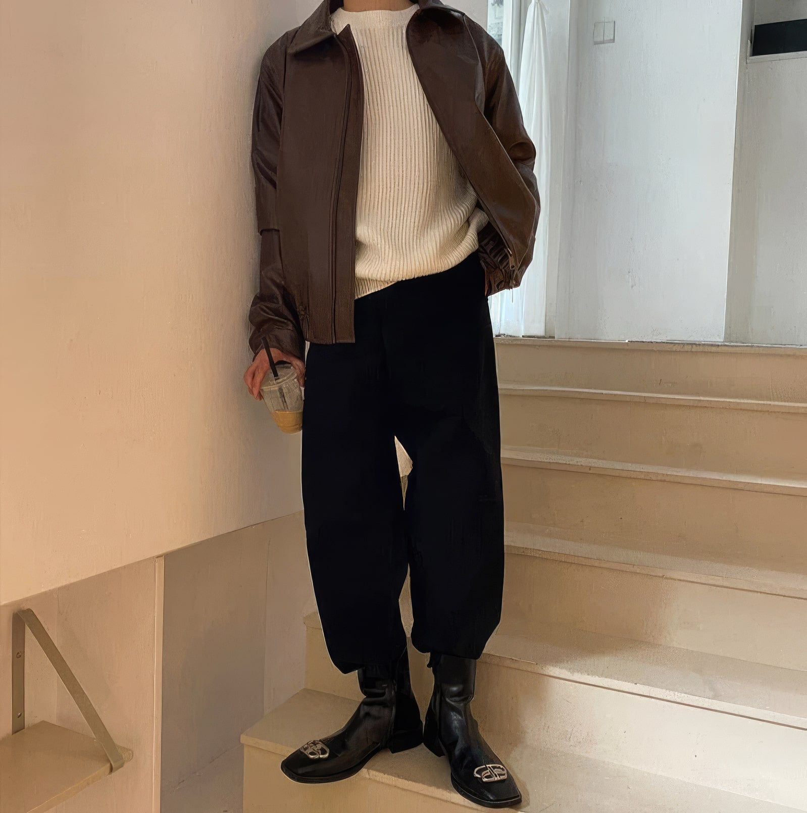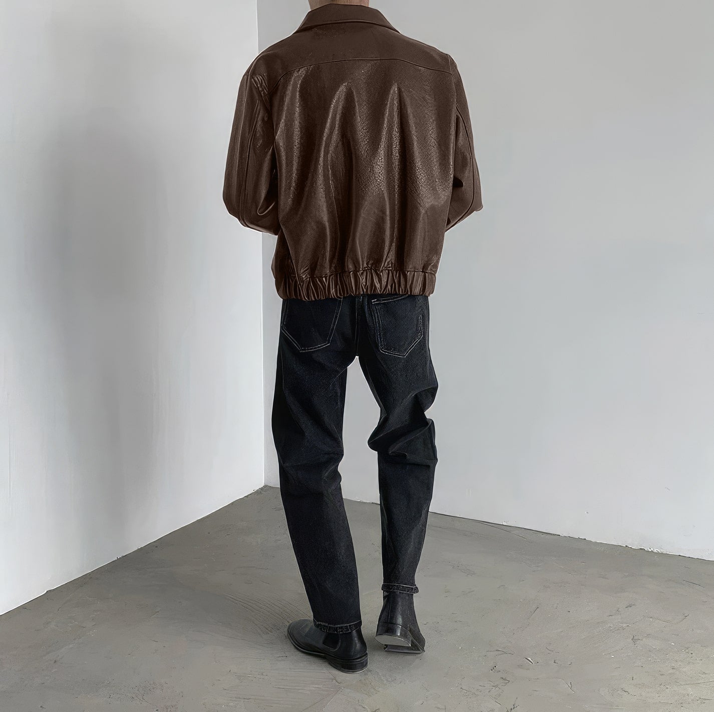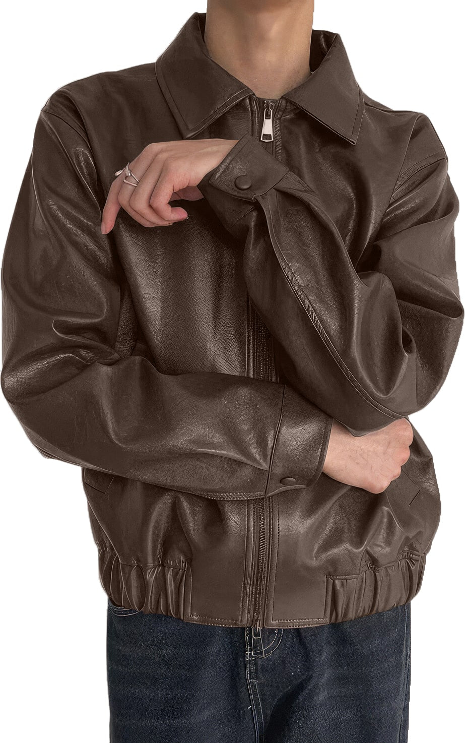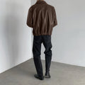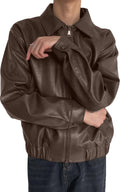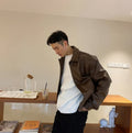 Men’s Brown Genuine Sheepskin Shirt Collar Classic Fashion Oversized Korean Loose Casual Smooth Leather Jacket