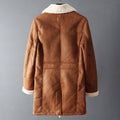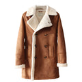 Men’s Brown Suede Sherpa Shearling Faux Fur Lined Double Breasted Lapel Collar Winter Warm Casual Classic Rugged Trench Coat