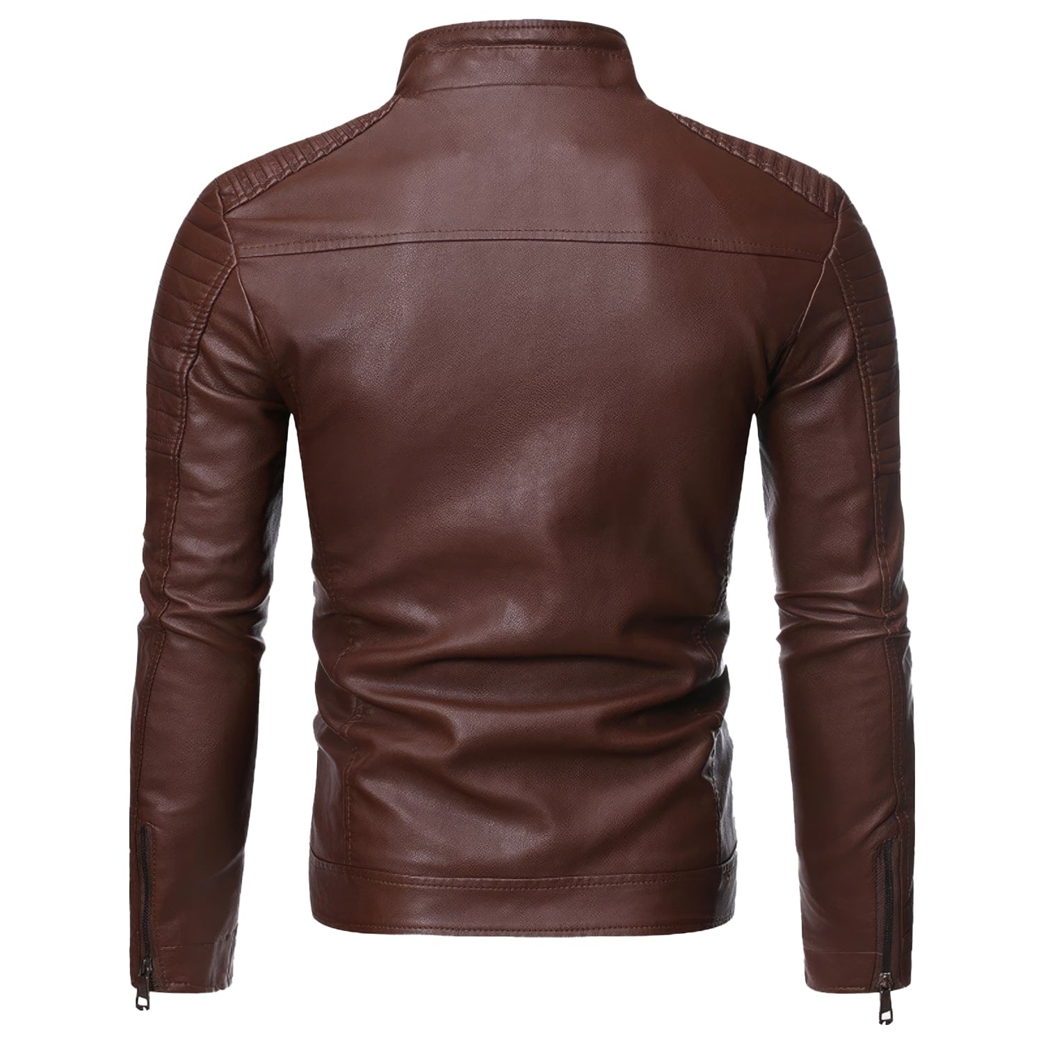 Men’s Coffee Brown Biker Genuine Sheepskin Quilted Design Motor Rider Zip-Up Casual Slim Fit Sporty Scooter Outfit Leather Jacket