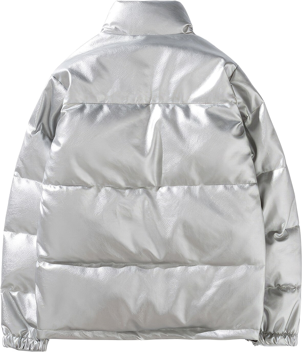 Men’s Grey Genuine Sheepskin Stand Collar Winter Warm Casual Baggy Style Padded Puffer Leather Jacket