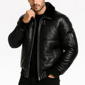Men’s Handmade Genuine Leather Jacket Classic Zipper Moto Bomber with Fur Collar