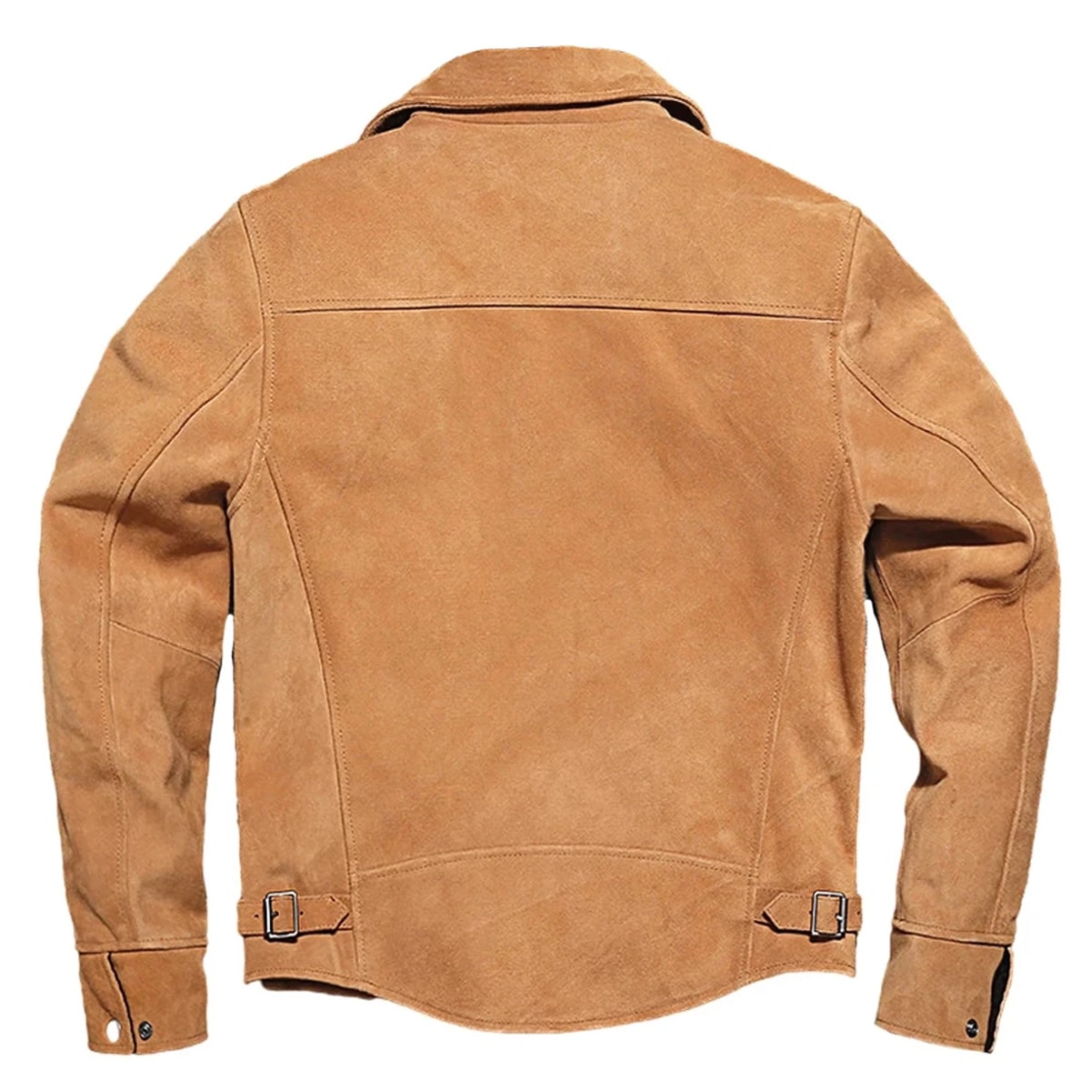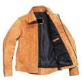 Men’s Trucker Vintage Brown Genuine Suede Turn-Down Collar Moto Biker Retro Leather Jacket