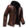 Men’s Vintage Distressed Brown Biker Genuine Sheepskin Lapel Collar Hooded Motorcycle Rider Crossover Retro Quilted Asymmetric Leather Jacket