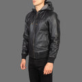 Men's Black Leather Hooded Motorcycle Jacket
