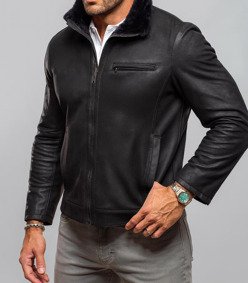 Men's Black Shearling Jacket – Genuine Sheepskin Leather Outerwear