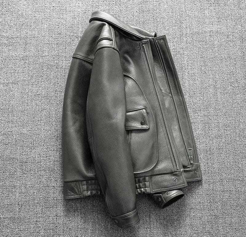 Men's Classic Casual Waxed Cowhide Leather Jacket