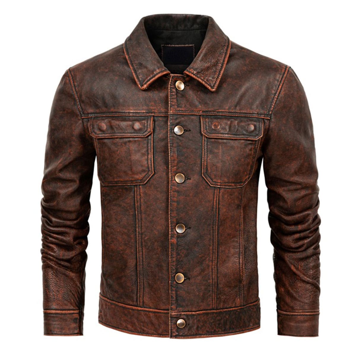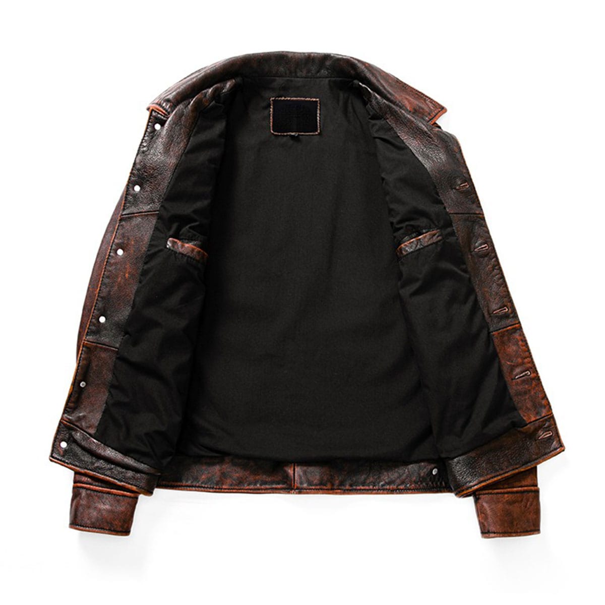 Men's Classic Genuine Cowhide Leather Coat for Autumn and Winter Warmth