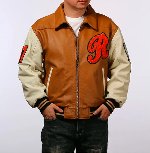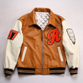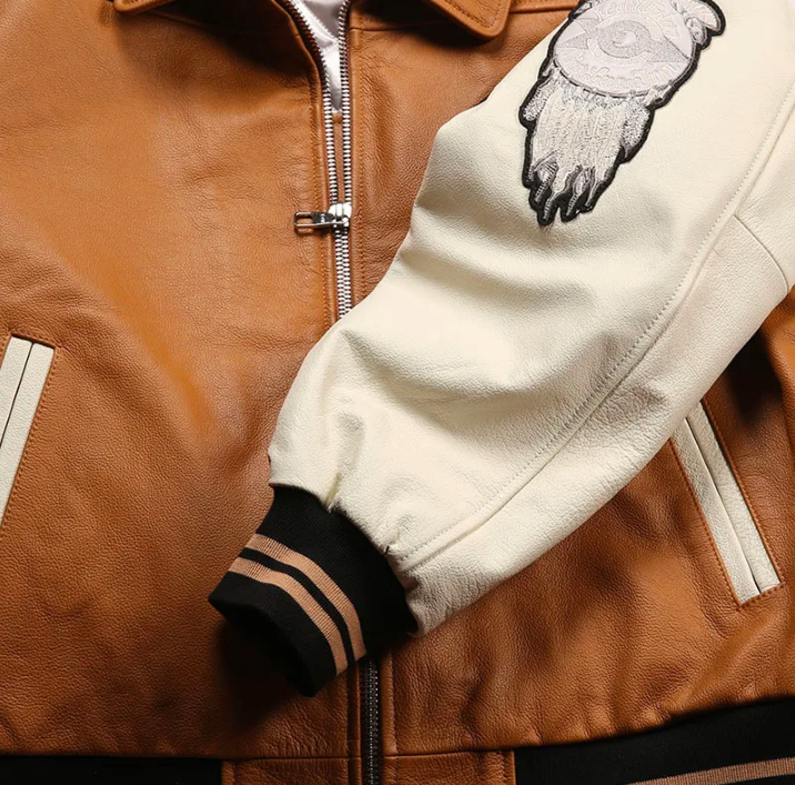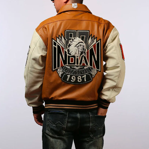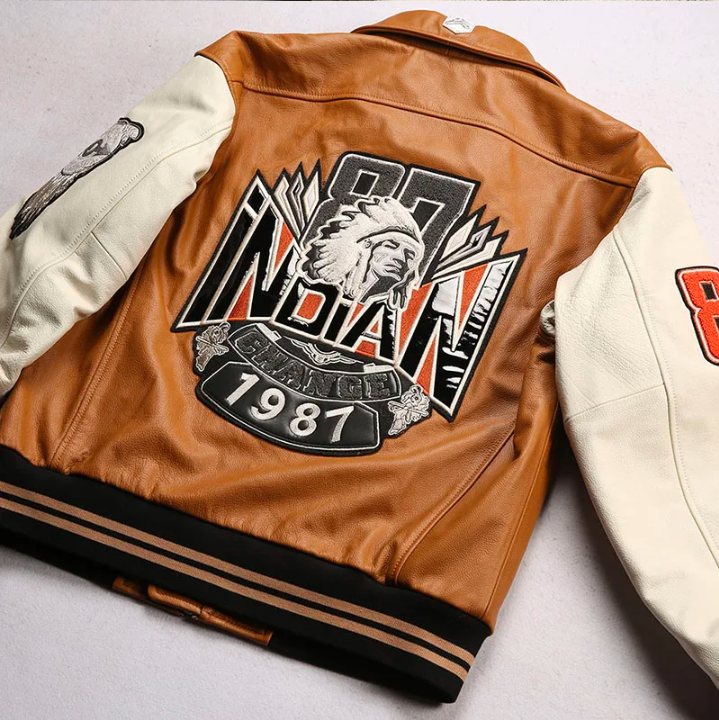 Men's Cow Leather Flight Jacket: Indian Embroidery Fashion Casual Sports Suit