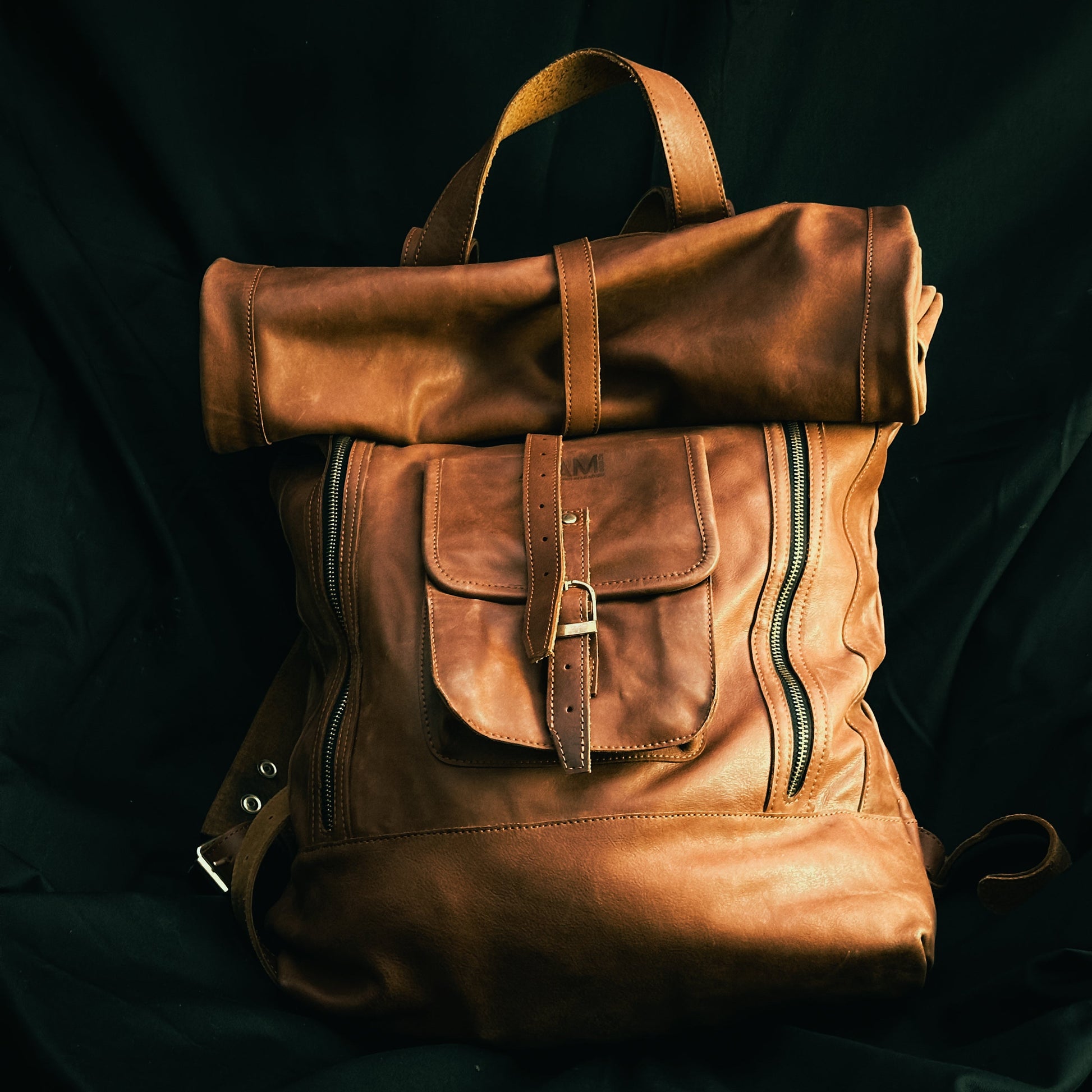 Men's Full Grain Vegetable Tanned Leather Travel Backpack
