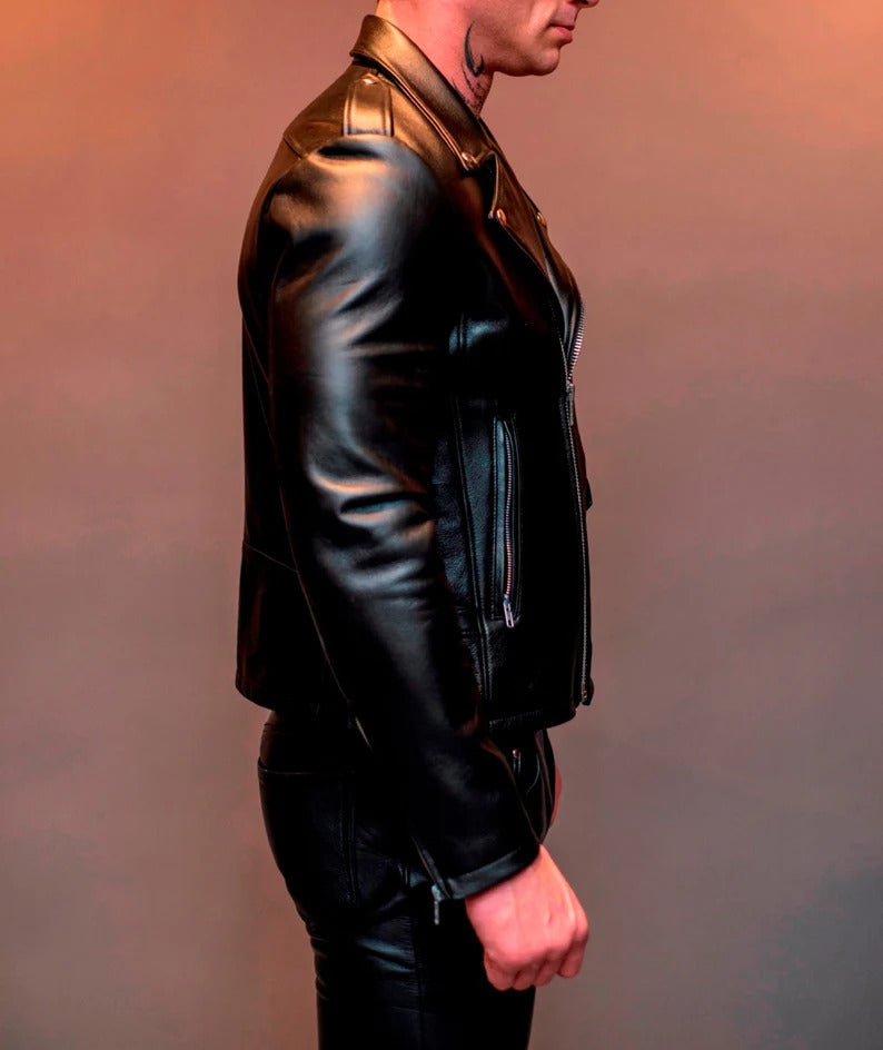 Men's Genuine Lambskin Leather Biker Jacket – Handmade Black Motorcycle Jacket