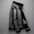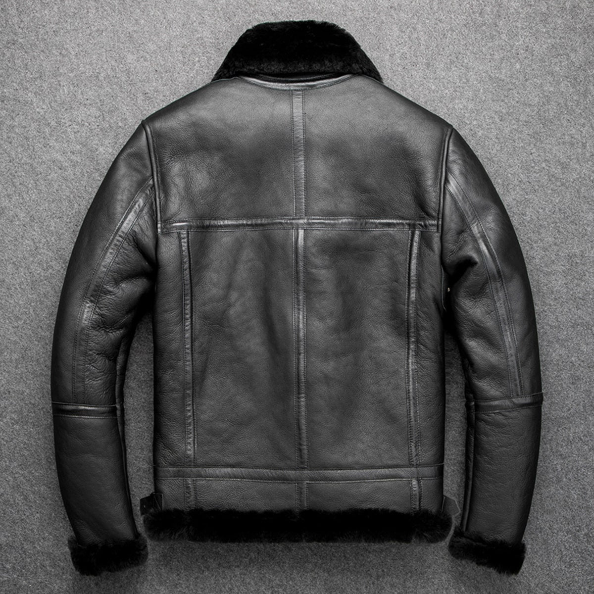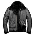 Men's Genuine Lambskin Sherpa Shearling B3 Bomber Jacket - Black, Faux Fur Lined, Air Force Flight Pilot G1 Military WW2 Warm Leather Jacket